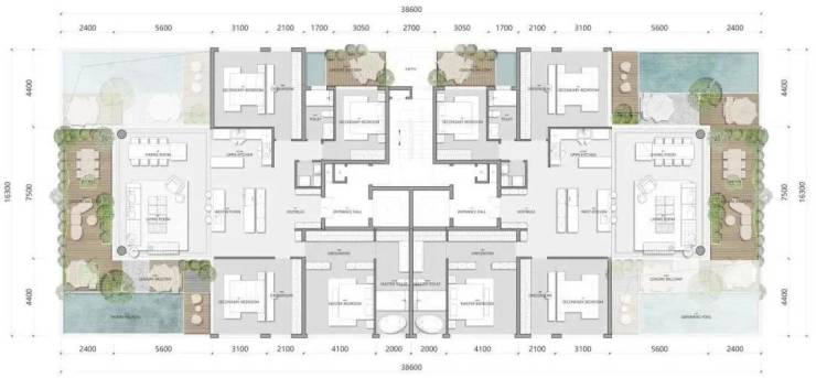 度假风格的户型设计——在低密度的社区规划下,户型设计充分考量了楼间距和光照条件,真正实现了居住空间的自由拓展。开阔的空间布局、偶遇的惊喜、宜人的自然风光以及一流的配套设施共同营造了浓厚的度假氛围。为了打造与众不同的居住体验,设计师们进行了大胆的创新实验。他们把深受住户喜爱的庭院空间引入到了高楼之中—通过巧妙地设计奇数层和偶数层的错位排列阳台,每个单元的某一部分阳台能够享有双倍高度的空间,自然形成宽敞的空中露台。