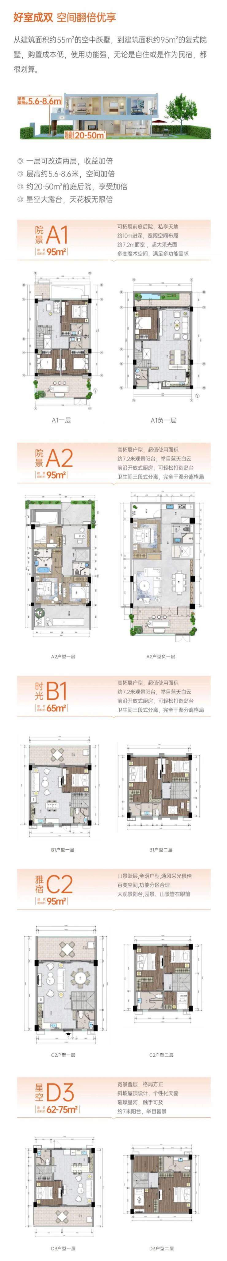 ⭐️ D2户型建筑面积:约75㎡