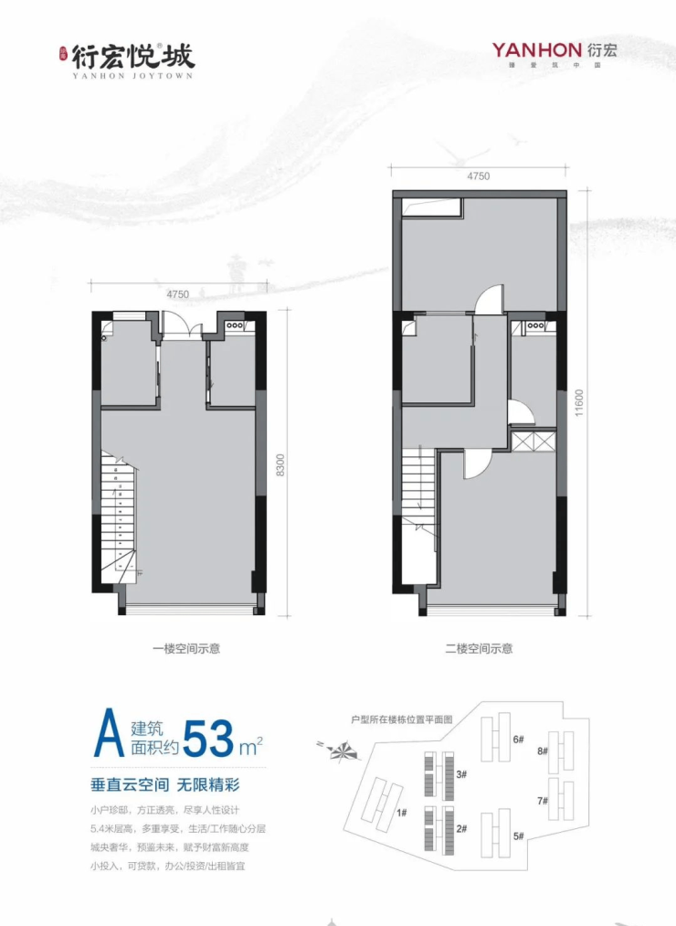 1号户型:53方 LOFT5.4米买1层享两层