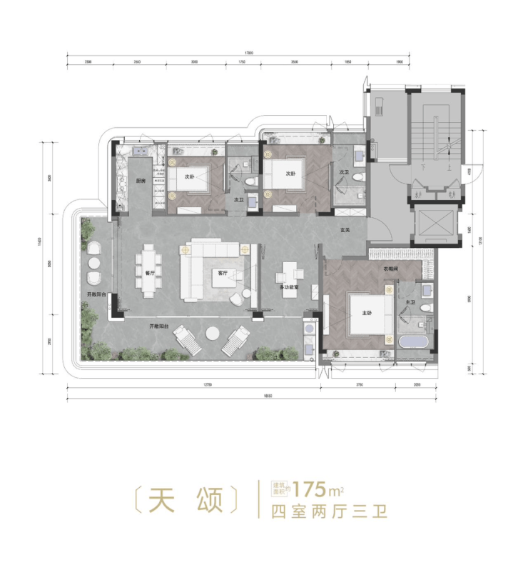 建筑面积约117-175㎡藏品级户型,110%超高得房率在湾区实属罕见,堪称“空间利用典范”。约3.15米层高突破物理界限,赋予空间精神性的高度。约9-12.5米超阔巨幕阳台系统,与宽厅及全景落地窗,共同构建出融合观景、社交与休憩的复合场域。