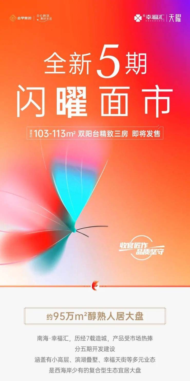 南海·幸福汇5期总建筑面积约8.9万平方米,打造绿化率40.01%,容积率1.5的城市低密精奢住区。五期产品作为南海·幸福汇的住宅收官之作,延续经典,采用合甲最新一代产品设计理念,坚持匠心精筑,敬献诚意人居作品。