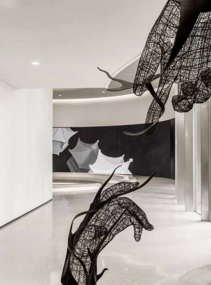 在整个空间中,现代主义设计美学贯穿始终,流动的曲线造型犹如生命之脉,赋予空间以独特的韵律与动感,这些曲线灵动而多变,它们营造出了一种开放包容、生机勃勃的空间氛围。