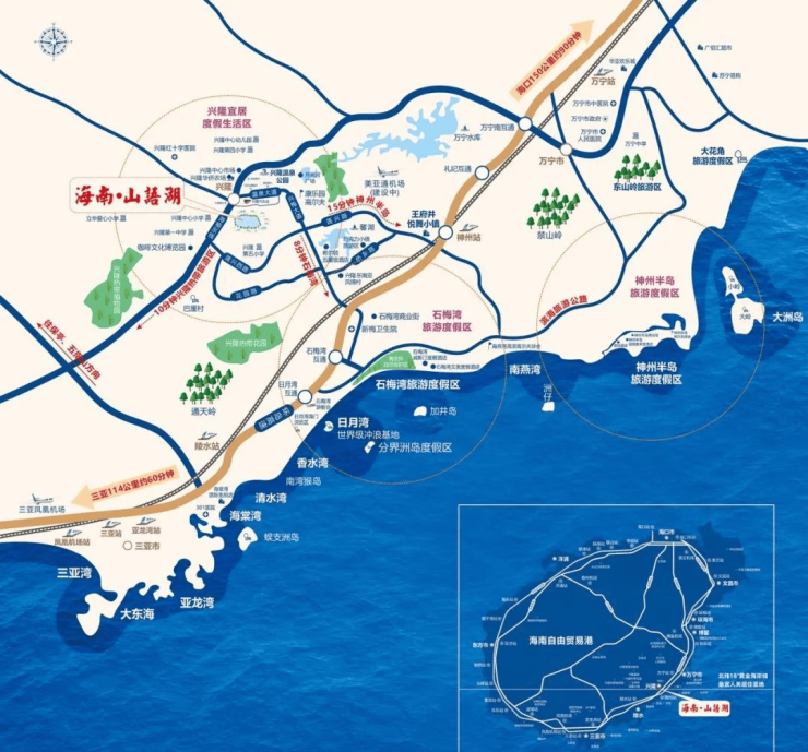 30分钟车程可达日月湾、南燕湾、神州半岛、海南最美公路等著名海边景区。