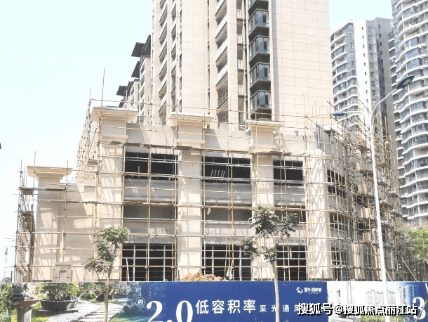 商业区干挂石材:南侧商业区干挂石材完成;北侧商业区2#楼石材干挂完成、3#楼干挂石材完成80%。