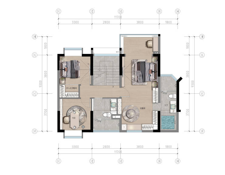 ◎套房主卧:臻配独卫/衣帽柜,以尺度感演绎品质宅居