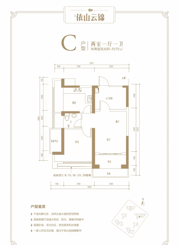 三亚依山云锦度假山居,板塔建筑巧妙布局,栋栋半山瞰城,通风采光视野开阔,让每一户都能享受负氧离子的呵护。三亚停建80平以下小户型商品住宅,依山云锦建面约52-61㎡山居美寓,更显难能可贵。精细利用每一寸空间,精质打造每一个细节,精选用材用料,如此精寓良园,犒赏您尊贵不凡的人生!