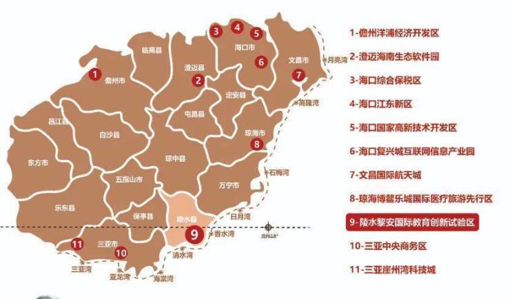2020年6月,海南升格为全国最大的中国特色自由贸易港,率先落地建设11大重点园区。