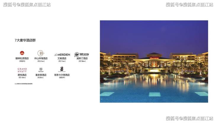 7座时尚奢华酒店 —— 朝林松源、君悦、伴山伴海、喜来登、艾美、威斯汀、丽思卡尔顿(建设中)