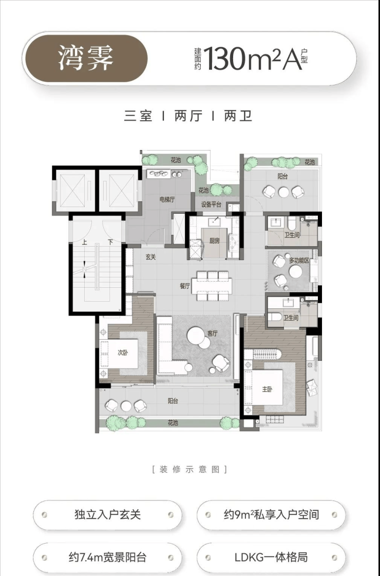 万科三亚湾项目的在售产品户型为建筑面积123~130平方的2+1房两卫,143~169平方的3+1房三卫,以及建筑面积189平方的四房三卫。