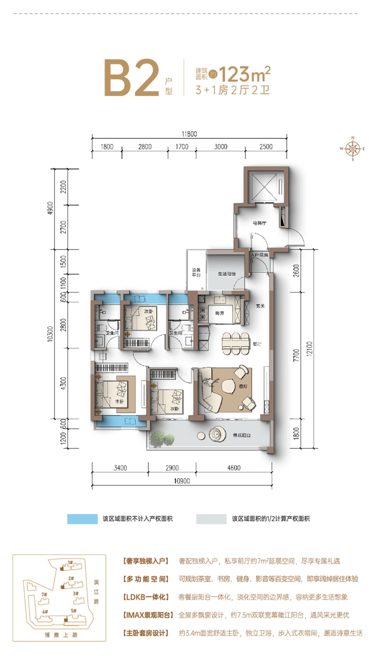 约120㎡舒阔3+1房
