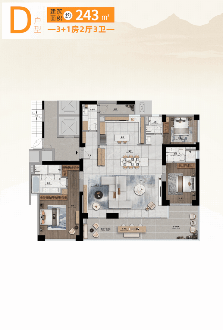 4.D户型,243㎡ 3+1房2厅3卫