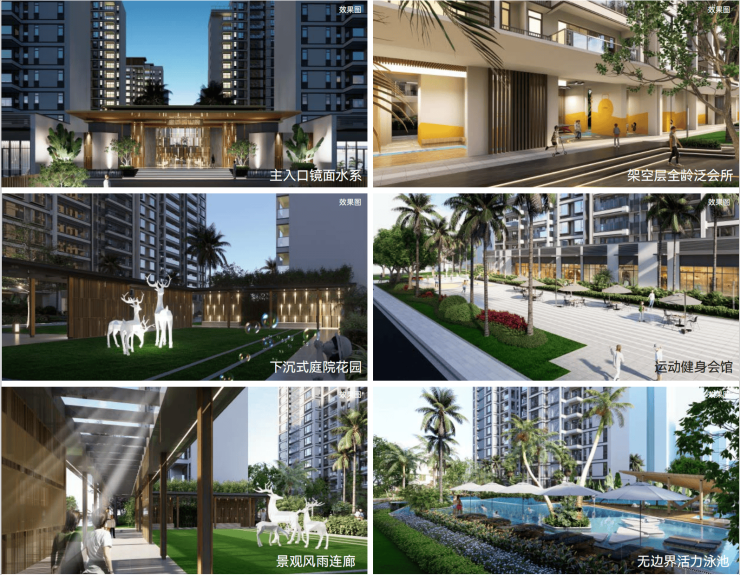 项目全部住宅楼栋首层均为架空层设计,规划休闲会所、晚风中心、活力泳池、便利商店、健身房,延伸业主的活动空间,更为业主带来更加多样与舒适的生活体验。