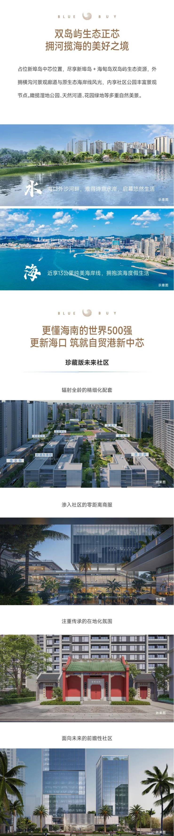 为赋新城市而来,中交·蓝色港湾将承担自贸岛商旅文创、活力休闲、滨海居住等功能,构筑十五分钟生活圈,涵盖中小学校、运动场所、社区医院、养老院、图书馆、综合服务中心、商业设施、银行网点、垃圾转运站、公交车站等。