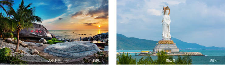 区域内享崖州古城,及周边南山寺、大小洞天、天涯海角等5A级景区旅游资源,出门即度假。