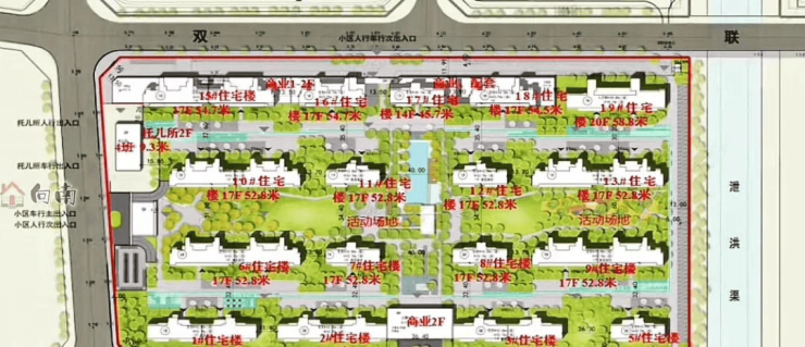 项目规划建设2栋地上14层高、14栋地上17层高、一栋地上20层高的住宅楼,一栋地上两层高的幼儿园以及地下一层的整体地下室。项目内紧邻文化路的15、16、17以及18号楼的地上一至二层为底层商业用房。