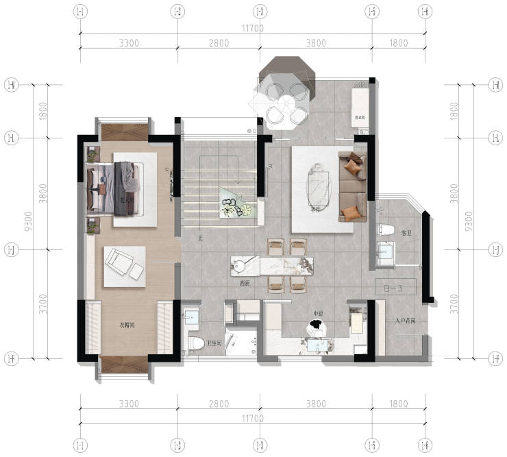 【B-3+B-3 空中微墅 建面约178㎡】