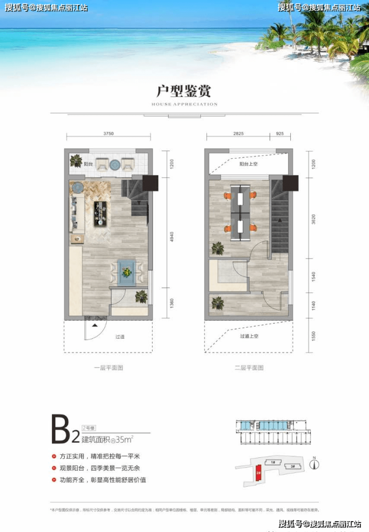 3、挑高5.4米,空间灵动百变,户型方正,层层采光,观景阳台可看小海