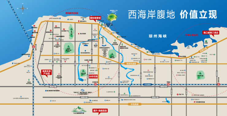 交通干道:南海大道、长滨路、海秀快速路、城际高铁