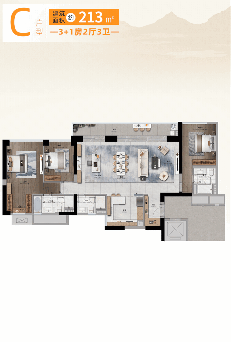 3.C户型,213㎡ 3+1房2厅3卫