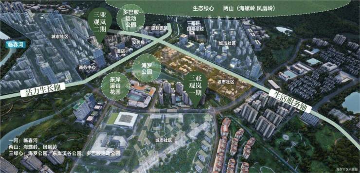 板块借“一河两山三绿心”织就三亚城芯罕见“山水绿网”,让自然与城市资源双向赋能,每一步皆穿行于自然,重塑城芯生活价值。