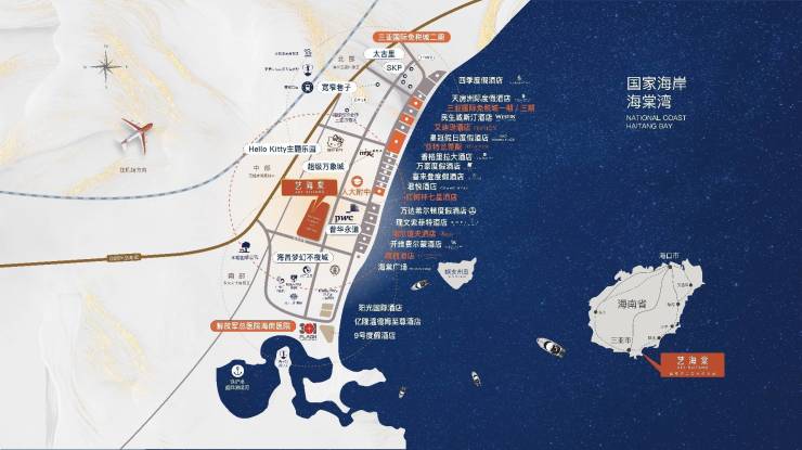 落址海南自由贸易港,三亚国际旅游消费中心,“国家海岸”海棠湾,湾区一线核心腹地。
