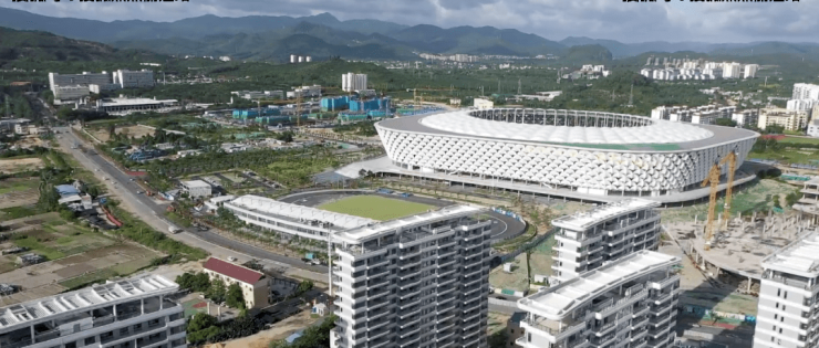 2021年9月,位于三亚抱坡新城内的三亚国际体育产业园体育场顺利完工。作为第六届亚洲沙滩运动会(以下简称三亚亚沙会)的闭幕式场地,三亚国际体育产业园体育场项目建筑面积8.6万平方米,设计座位4.5万个,是海南最大的体育场。