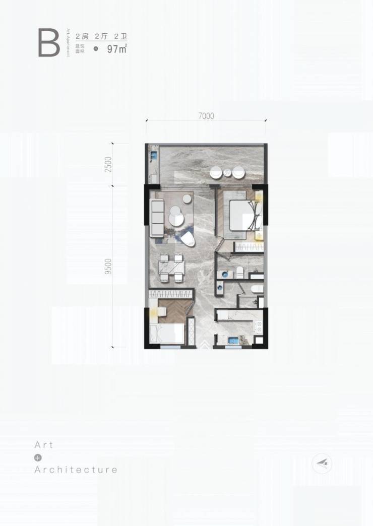 B户型/2房/2厅/2卫/97㎡