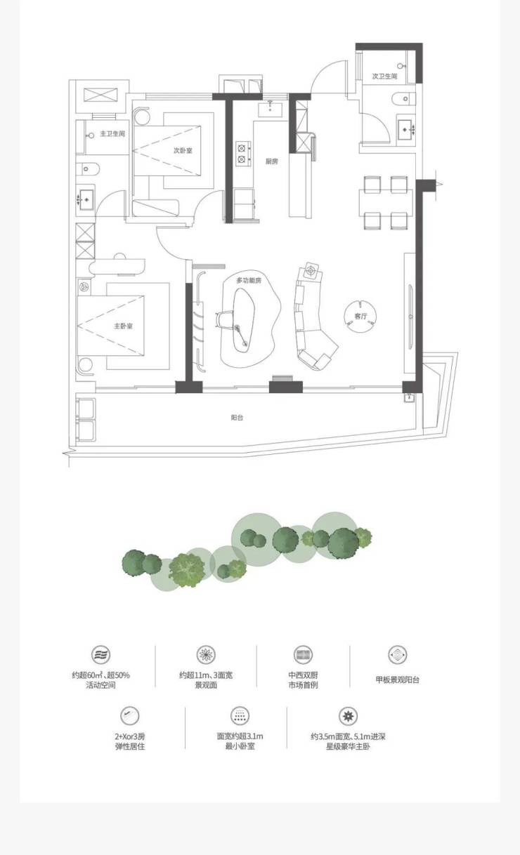 △约 125㎡ 超配×多变(2+1房·两厅·双卫·双厨)