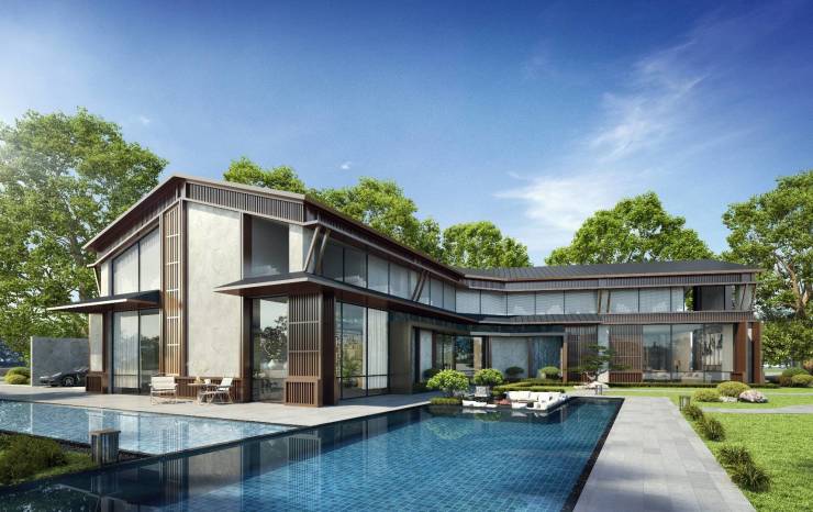 融合传统东方意韵与现代时尚美学,秉承“造-空间、承-文化、融-自然”的筑造理念,匠筑“湖景、水院、厅园、金池、曲溪”等多重景观。