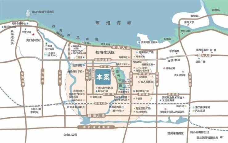 高铁高速:高铁-秀英站(约2公里)、汽车西站、西线高速、海榆中线等;