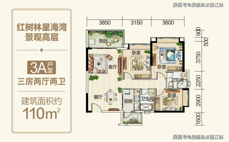 室内布局功能清晰,均配景观阳台,尽享红树林双海湾美景;
