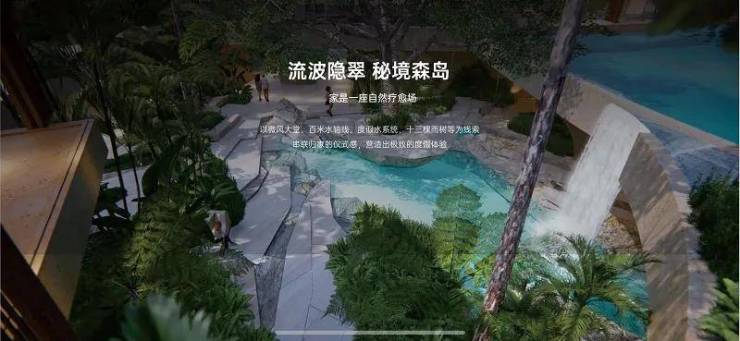 大雨树下的休息区是邻里的互动休闲天地,私域空间内的微风大堂则是更能彰显居者的品位。