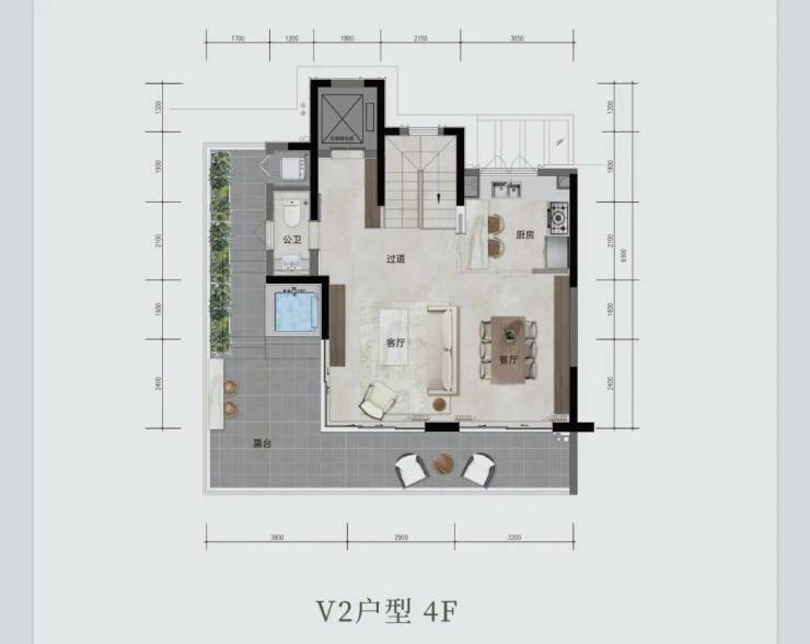 上叠院墅 V2 户型,约 160㎡(或 158.1㎡ ),三室两厅三卫。有私人电梯、双重玄关,约 6.1 米度假观景横厅,270° 三面采光 。约 30㎡L 型花园露台,能欣赏 270° 环幕景观。主卧奢阔,配备步入式衣帽间与独立卫浴,还有可拓展空间随心改造。