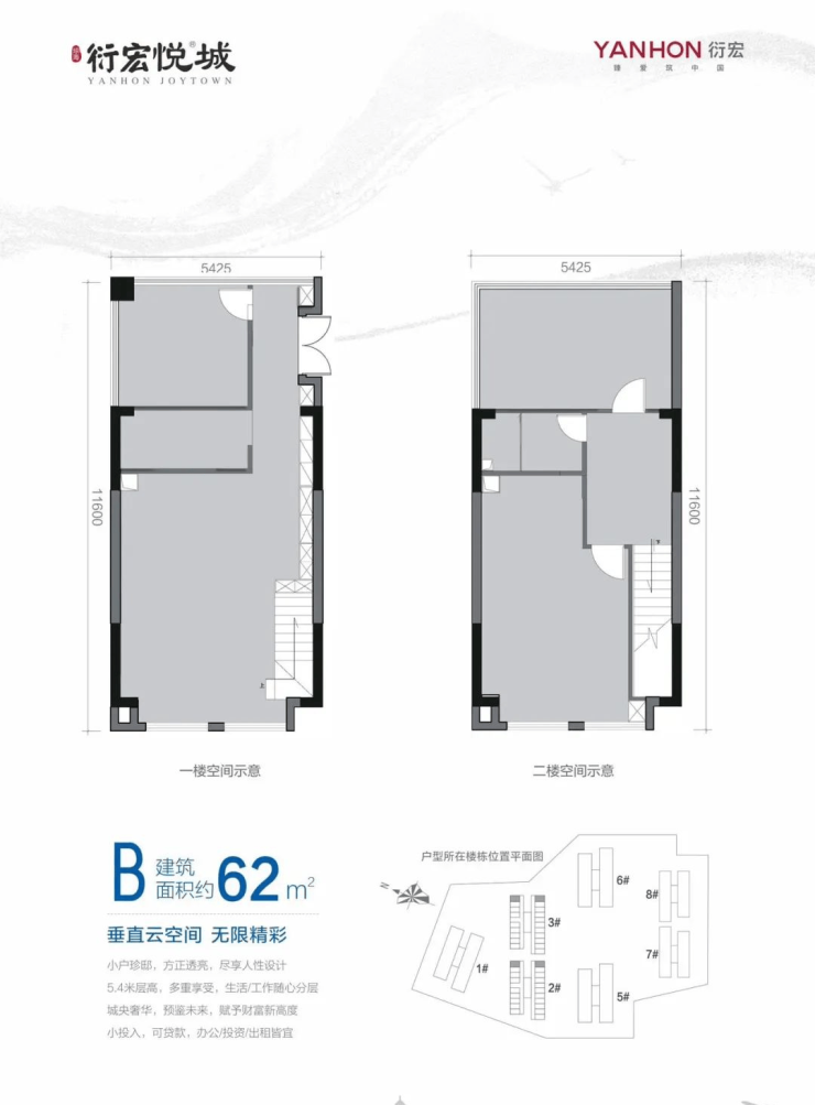 2号户型:62方 LOFT5.4米买1层享两层
