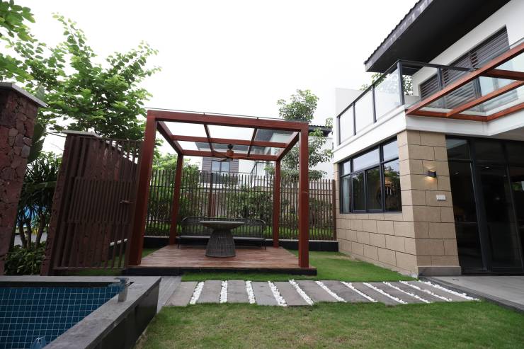 A1留云小院,套内面积约76㎡,使用面积约128㎡,220万起,两房两厅三卫,可改三房,海南稀缺小别墅,独门独院设计,一层大面积私家庭院,带温泉泡池,半敞开客厅,双卧套间。