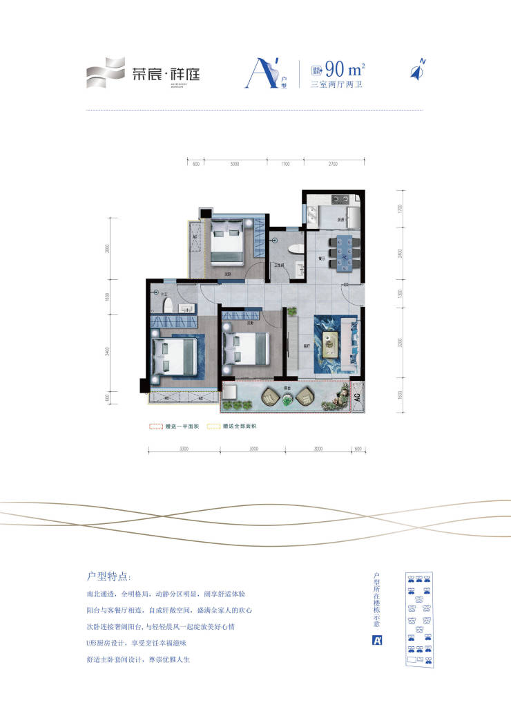 项目产品分为三类五个户型(90㎡户型2个,100㎡户型2个,120㎡户型1个),产品整体设计方正,最大化增加产品的得房率及使用率,功能布局合理,动线清晰。