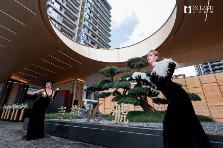 吉祥 16 号的建筑设计独具匠心,整体借鉴湾流飞机的空气动力学设计,采用大量双曲铝板,造价近一亿,呈现出极致对称的独特身姿。81 米的大门彰显磅礴大气,“天圆地方” 的设计格局搭配奢石与名木,尽显居者身份地位。同时,项目利用自然形成的台地景观,定制下沉花园景观,让业主在漫步时感受立体景观的变化。