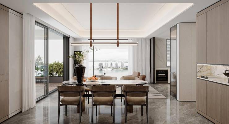从“户户景观最大化”理念出发,打造270°环形弧度阳台,约3.15-3.6 米通感高奢的挑高气度,达观天海恢弘画卷