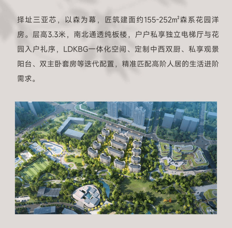 休闲公园方面生活配套方面今年12月18日,海南自贸港启动全岛封关运作,海南将迎来全新的发展机遇,三亚中央商务区作为重点园区,高度集聚的人才对品质住宅的需求也将攀升。