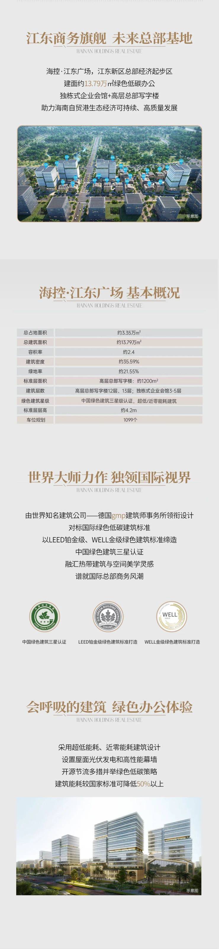 海控·江东广场项目是海南控股贯彻落实省委、省政府关于“省属国企参与江东新区开发建设”的工作要求,以“绿色低碳健康”的开发理念投资建设的大型商办项目,总建筑面积约13.8万平方米。