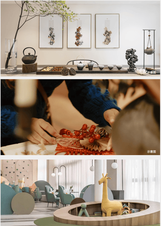 书法茶室、儿童俱乐部、共享图书馆、社区服务站