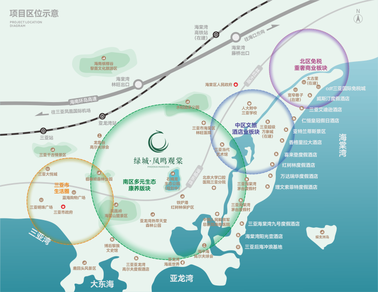 距海棠湾海岸线约4.5KM · 亚龙湾动车站约14.6KM·三亚市主城区约21KM · 三亚凤凰机场约36KM