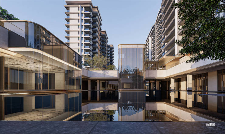 •三进:晴雨院 | 以静水面、下沉水院为核心景观,连接业主大堂、暖心礼堂,形成视觉焦点