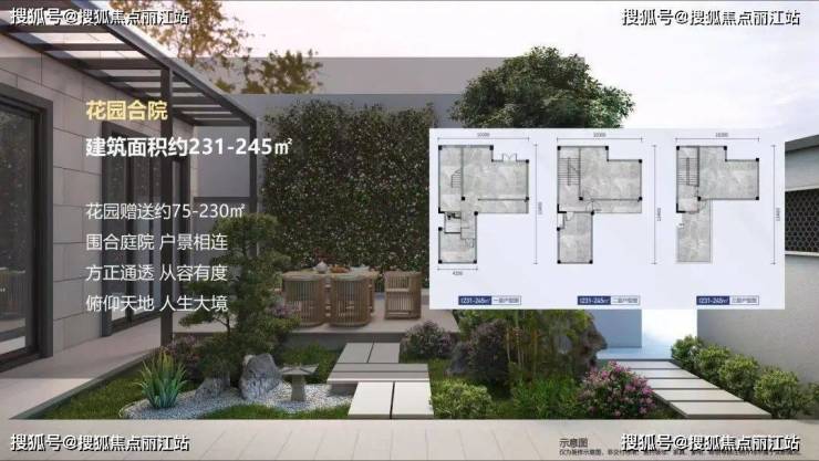 产品户型:建面约230-246㎡花园式合院,建面约276㎡空中平墅