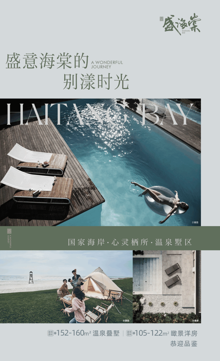 国家海岸、栖心度假、东方美学、低密奢宅、温泉入户、臻品精装、归家礼遇、绿城服务 ,盛海棠把这些美好都集于一身。不管是度假还是定居,这里都是绝佳选择。要是你也心动了,就快去实地感受一下吧!