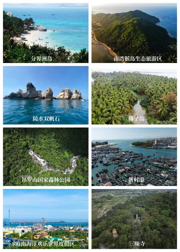 陵水位于海南岛东南部,拥享118.57公里的优美海岸线,“三湾三岛两湖一山一水”旅游资源汇聚,是宜居宜游的国际性滨海度假天堂。