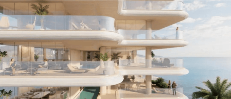 汲取全球滨海奢宅灵感,以现代手法演绎经典:弧形曲线呼应海浪,横向飘板勾勒如海平线般开阔、平稳的观感,营造从容、安宁的“滨海松弛感”。