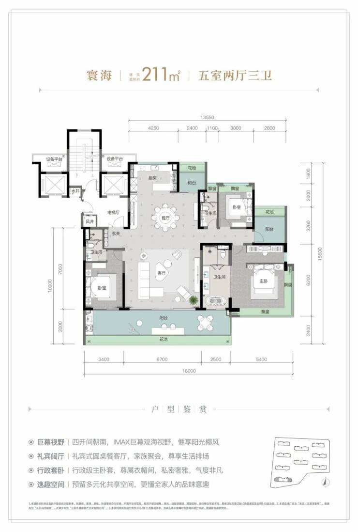 规划建筑面积约126-213㎡观海奢装大平层,约3.1米阔绰层高,部分户型创新设计270°全景飘窗主卧套、四开间朝南等,全成品高标奢装,营造全新舒居体验。