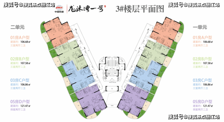 建筑面积约:106.68-121.47㎡(三至四房)