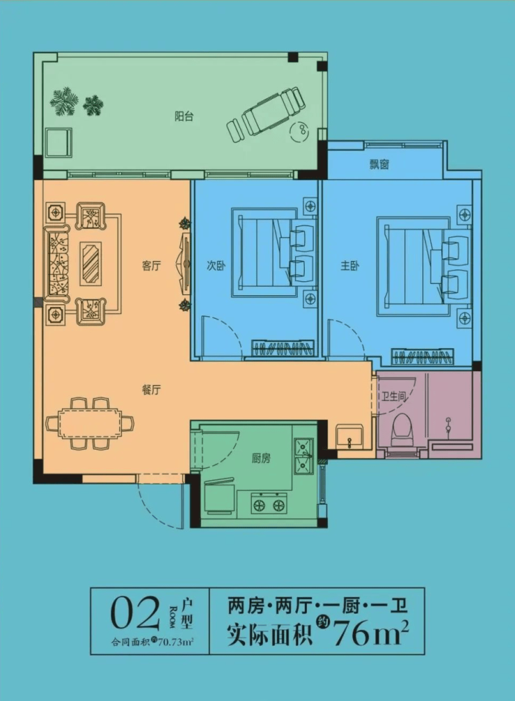 建筑面积:70平米,实得面积76平米